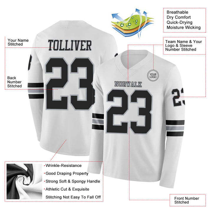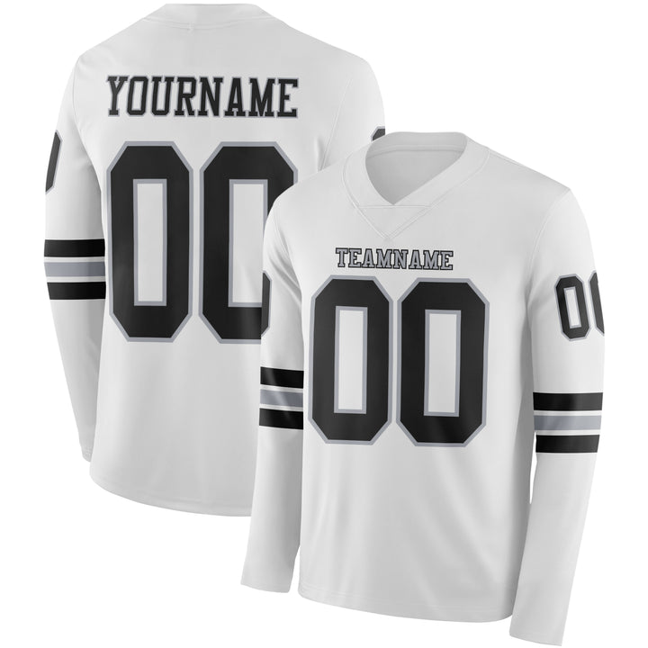 Custom White Black-Gray Long Sleeve Authentic Football Jersey
