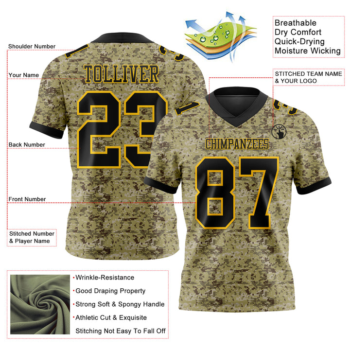 Custom Camo Black-Yellow 3D Pattern Salute To Service Authentic Football Jersey