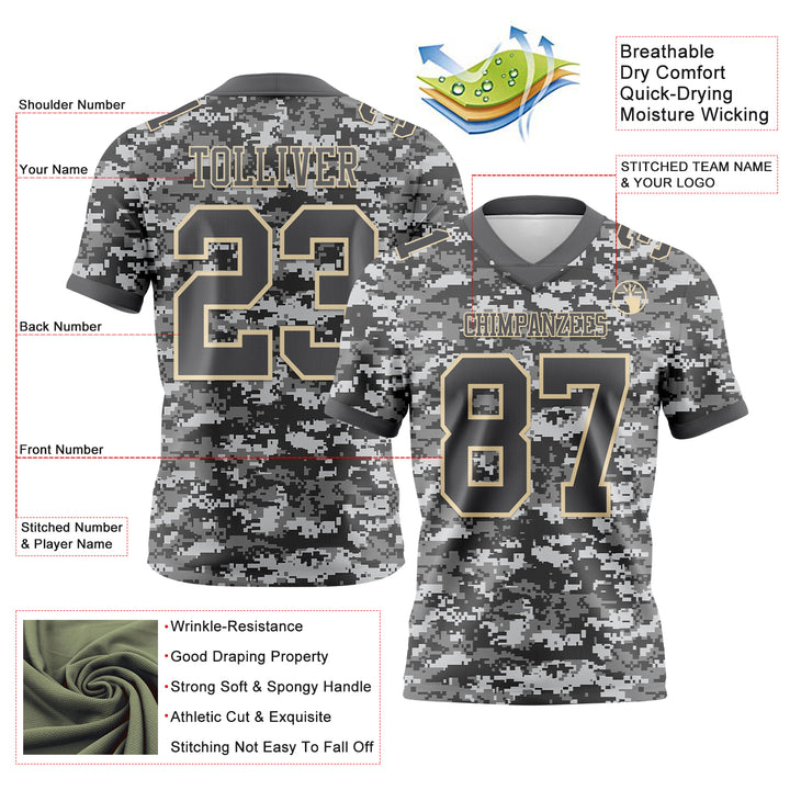 Custom Camo Steel Gray-Cream 3D Pattern Salute To Service Authentic Football Jersey