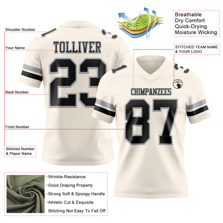Custom Cream Black-Gray Authentic Football Jersey