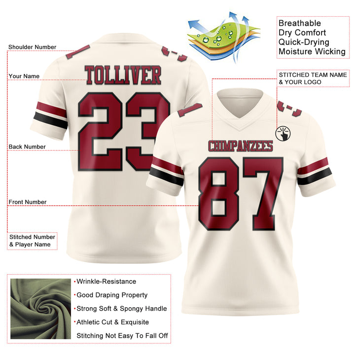 Custom Cream Cardinal-Black Authentic Football Jersey