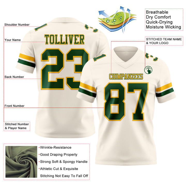 Custom Cream Green-Gold Authentic Football Jersey