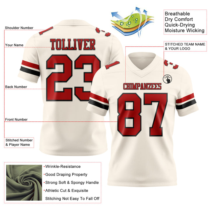 Custom Cream Red-Black Authentic Football Jersey