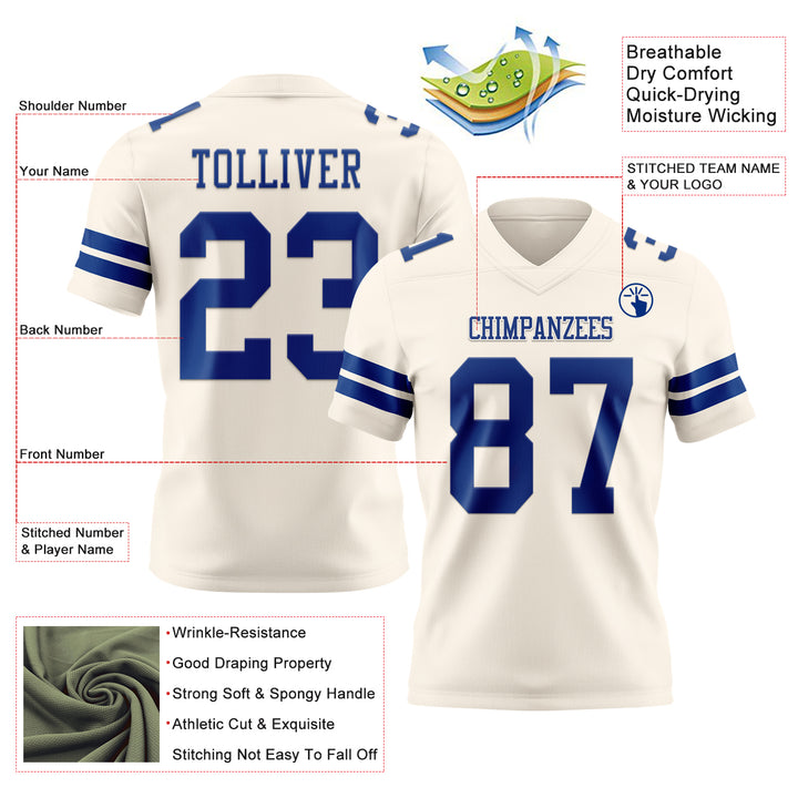 Custom Cream Royal Authentic Football Jersey
