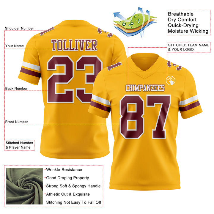 Custom Gold Burgundy-White Authentic Football Jersey