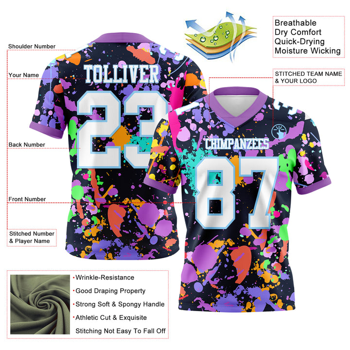 Custom Graffiti Pattern White Light Blue-Medium Purple 3D Pattern Splash Authentic Football Jersey