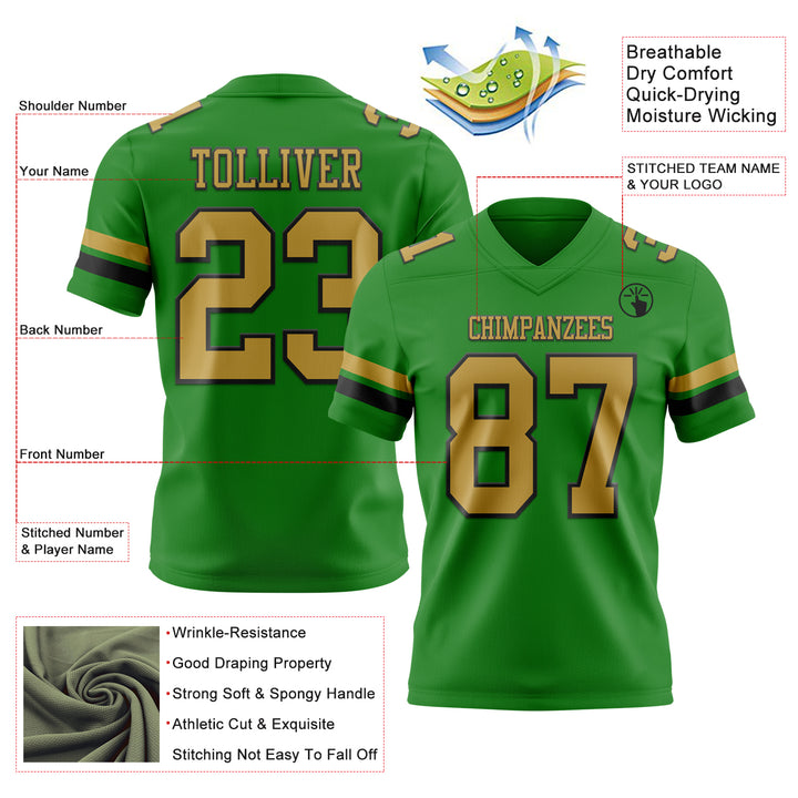 Custom Grass Green Old Gold-Black Authentic Football Jersey