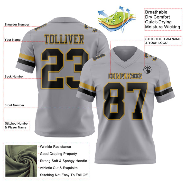 Custom Gray Black-Old Gold Authentic Football Jersey