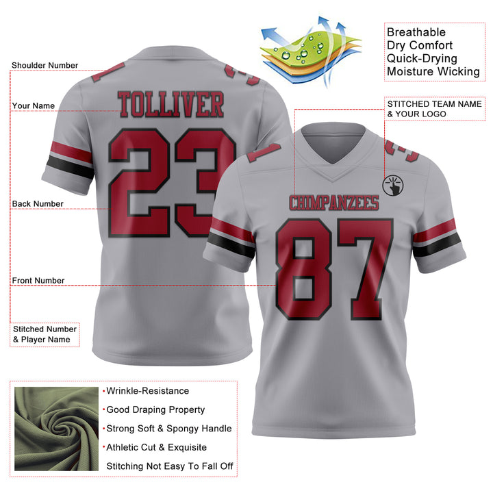 Custom Gray Cardinal-Black Authentic Football Jersey