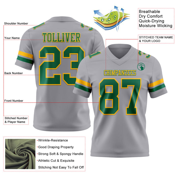 Custom Gray Kelly Green-Gold Authentic Football Jersey