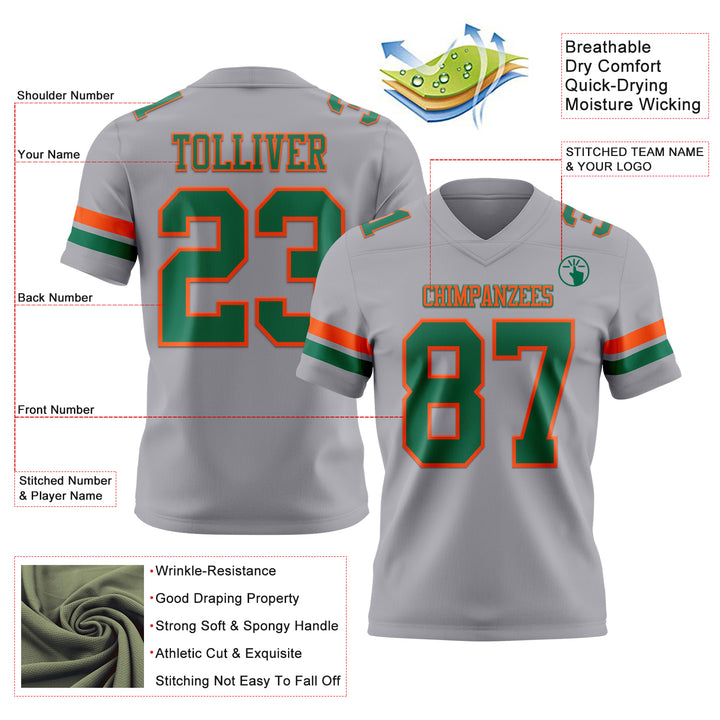 Custom Gray Kelly Green-Orange Authentic Football Jersey
