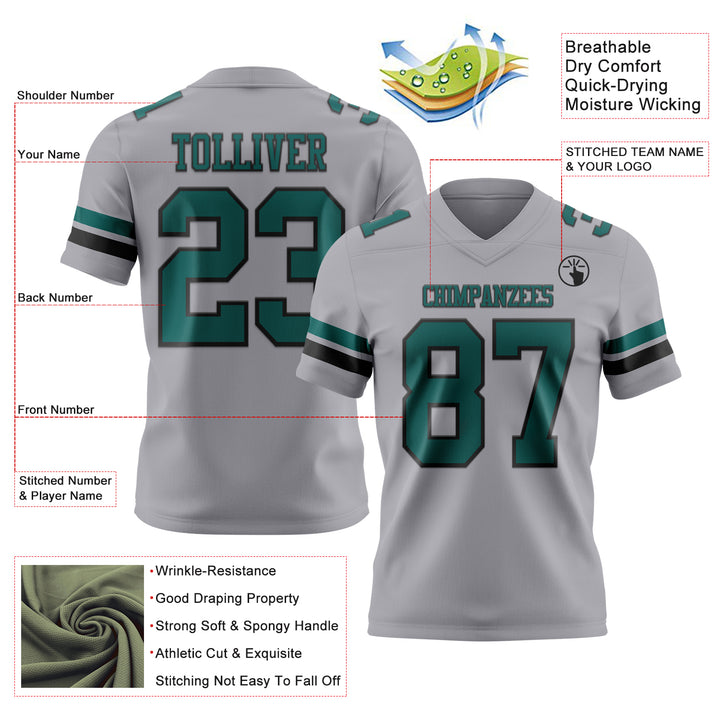 Custom Gray Midnight Green-Black Authentic Football Jersey