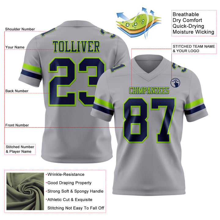 Custom Gray Navy-Neon Green Authentic Football Jersey