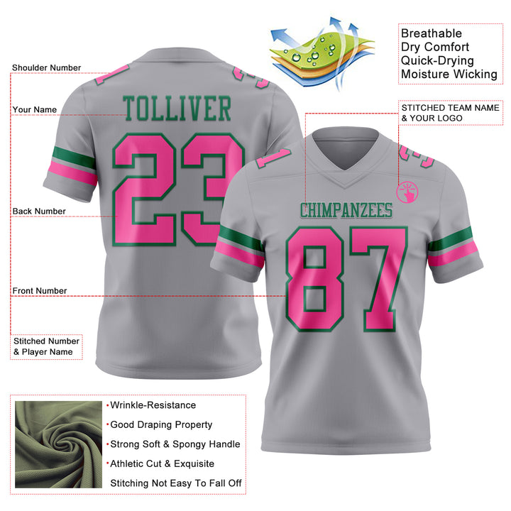 Custom Gray Pink-Kelly Green Authentic Football Jersey