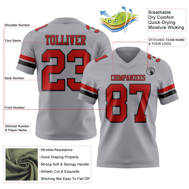 Custom Gray Red-Black Authentic Football Jersey