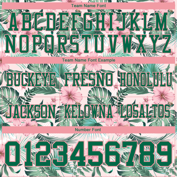 Custom Medium Pink Kelly Green 3D Pattern Hawaii Palm Leaves And Flowers Authentic Football Jersey