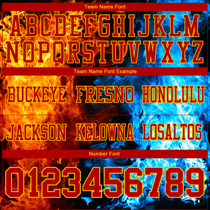 Custom Red Gold 3D Pattern Flame Authentic Football Jersey