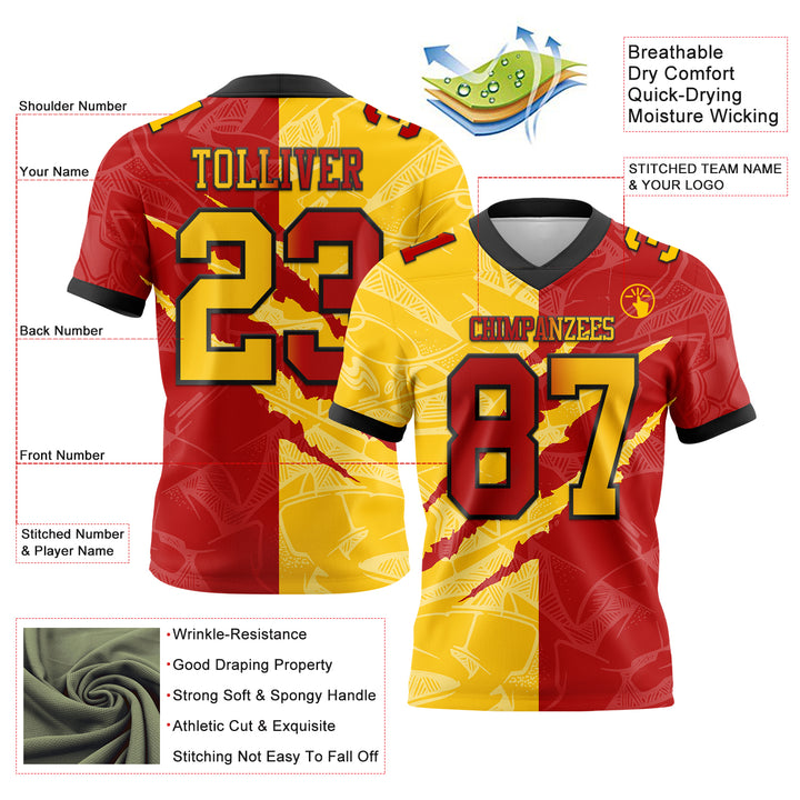 Custom Red Yellow-Black Authentic Gradient Fashion Scratch Football Jersey