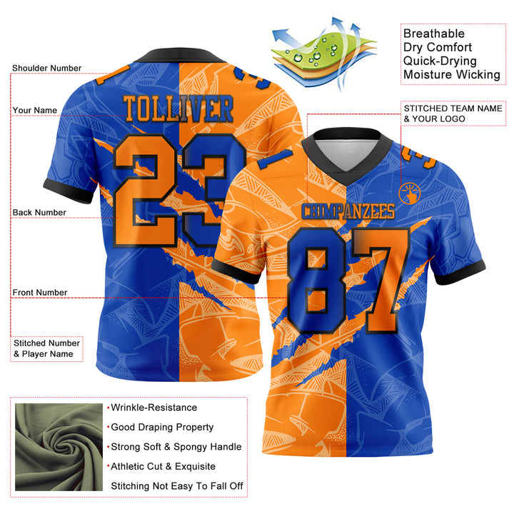 Custom Thunder Blue Bay Orange-Black Authentic Gradient Fashion Scratch Football Jersey