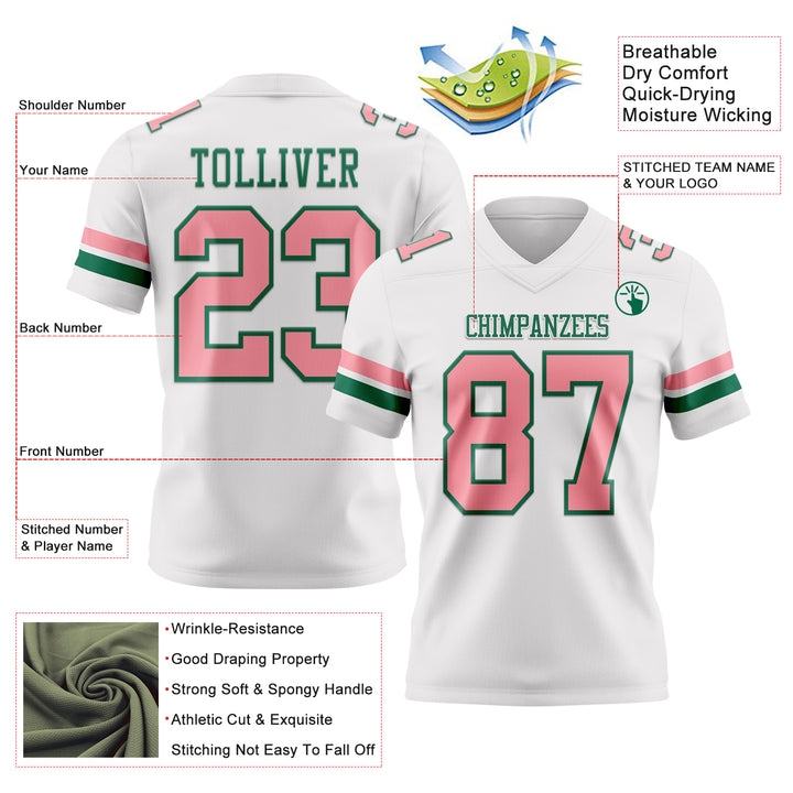 Custom White Medium Pink-Kelly Green Authentic Football Jersey