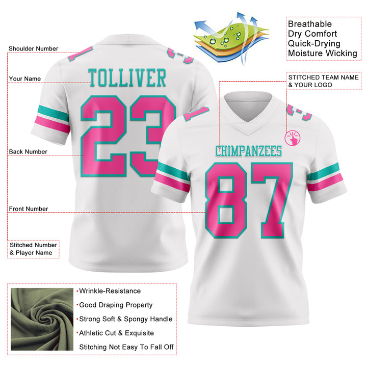 Custom White Pink-Aqua Authentic Football Jersey