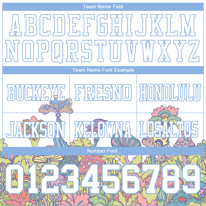 Custom White Light Blue 3D Pattern Colorful Flowers And Mushrooms Psychedelic Hallucination Authentic Football Jersey