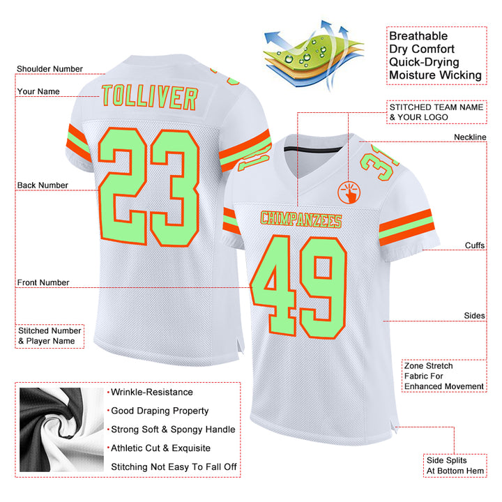 Custom White Pea Green-Orange Mesh Authentic Football Jersey