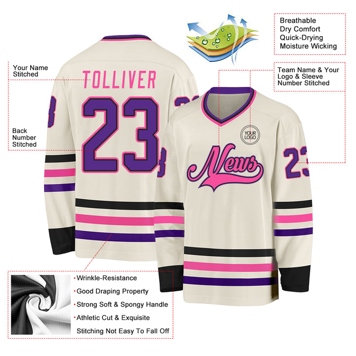 Custom Cream Purple Black-Pink Hockey Jersey