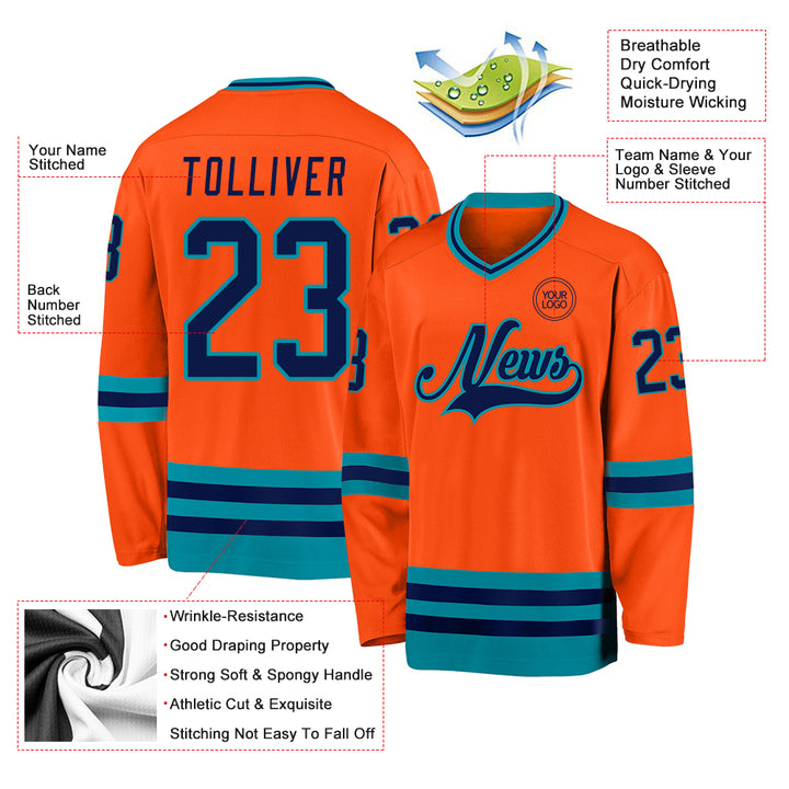 Custom Orange Navy-Teal Hockey Jersey
