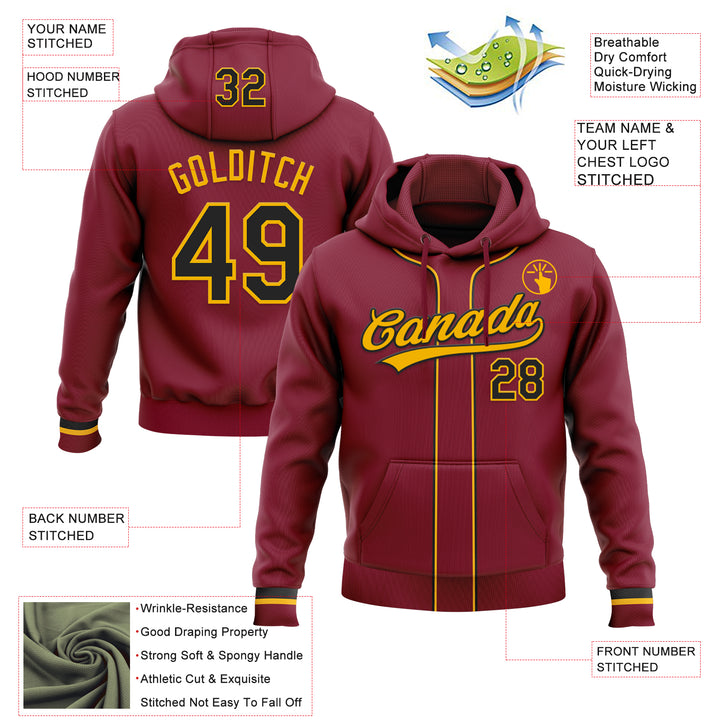 Custom Stitched Crimson Black-Gold Baseball Pullover Sweatshirt Hoodie