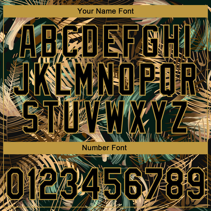 Custom Stitched Black Old Gold 3D Tropical Leaves In The Style Of Jungle And Hawaii Sports Pullover Sweatshirt Hoodie