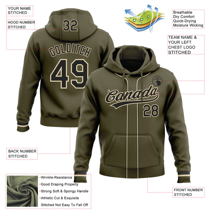 Custom Stitched Olive Black-Cream Baseball Pullover Sweatshirt Hoodie