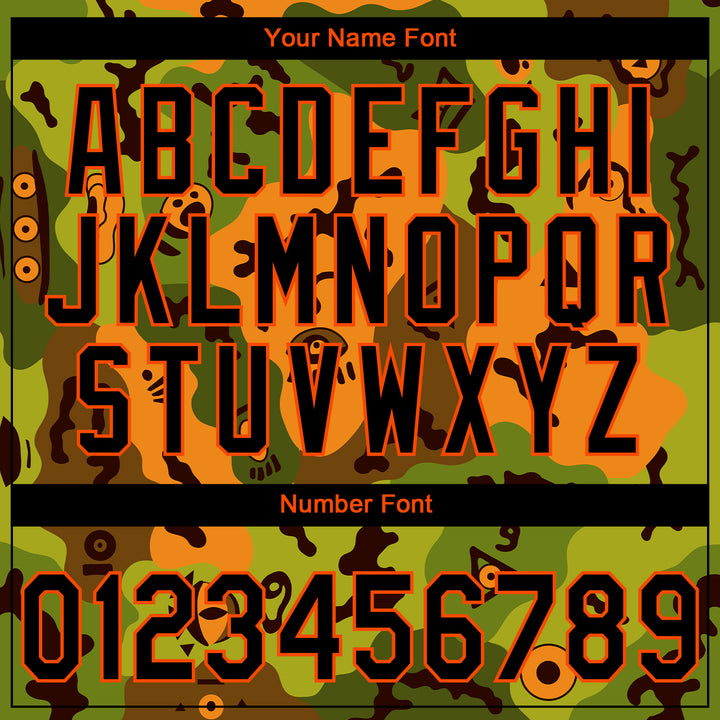 Custom Stitched Camo Black-Orange 3D Funny Faces Sports Pullover Sweatshirt Salute To Service Hoodie