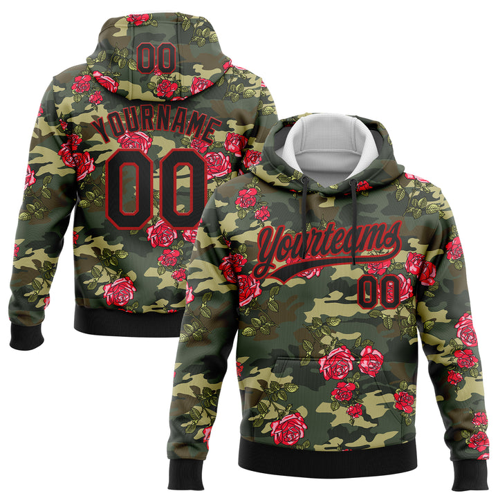 Custom Stitched Camo Black-Red 3D Rose Sports Pullover Sweatshirt Salute To Service Hoodie