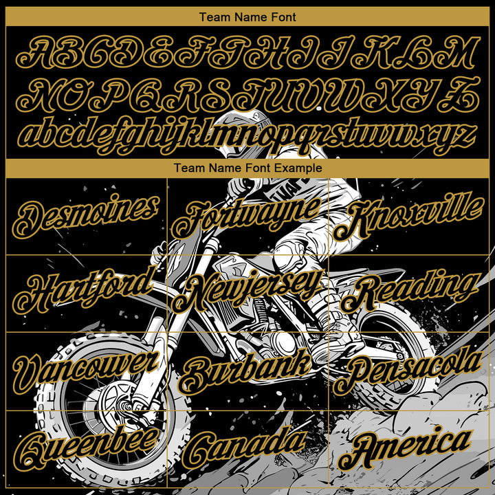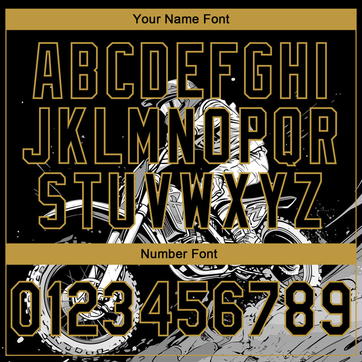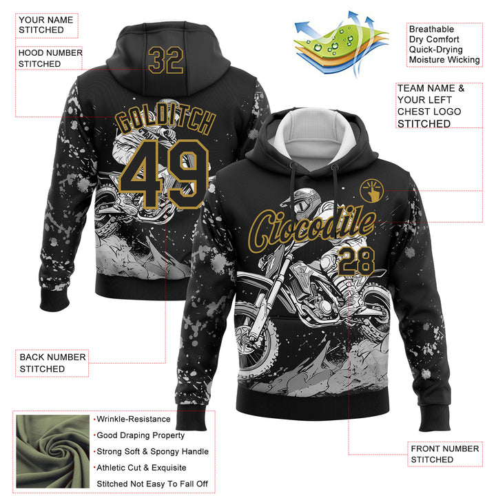 Custom Stitched Black Old Gold 3D Pattern Design Motorcycle Motocross Racing Sports Pullover Sweatshirt Hoodie