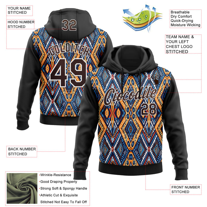 Custom Stitched Black Brown Blue Orange-White 3D Mexico Aztec Pattern Sports Pullover Sweatshirt Hoodie