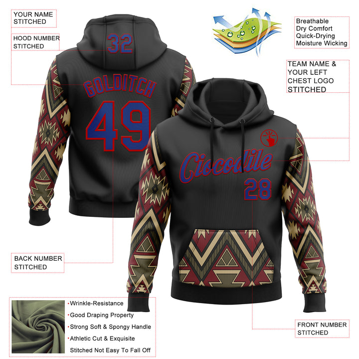 Custom Stitched Black Royal Cream Gray-Red 3D Mexico Aztec Pattern Sports Pullover Sweatshirt Hoodie