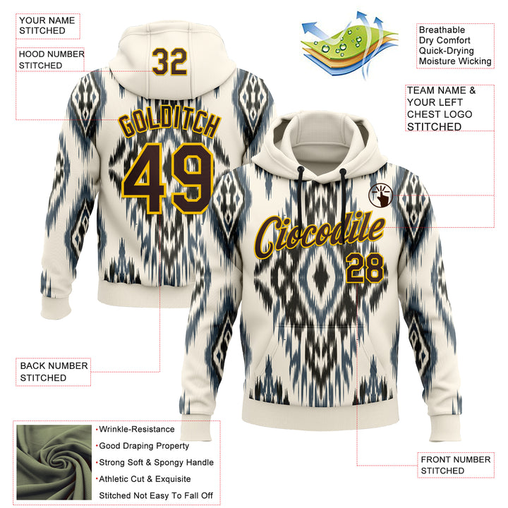 Custom Stitched Cream Brown Blue-Yellow 3D Mexico Aztec Pattern Sports Pullover Sweatshirt Hoodie