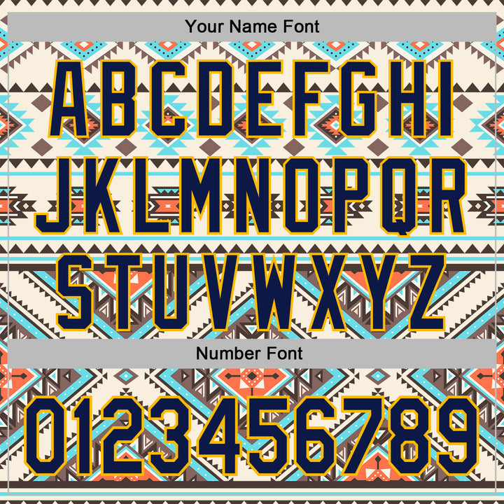 Custom Stitched Cream Navy Blue Orange Gray-Gold 3D Mexico Aztec Pattern Sports Pullover Sweatshirt Hoodie