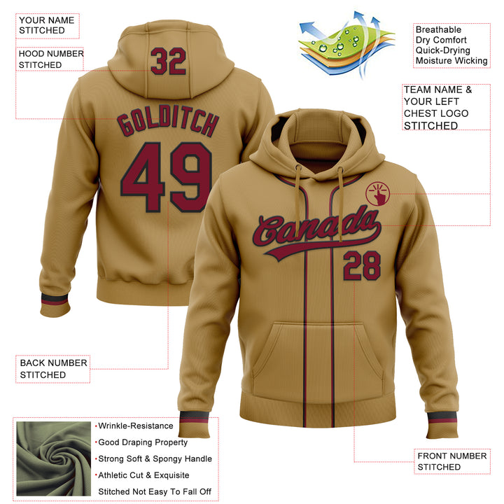 Custom Stitched Old Gold Crimson-Black Baseball Pullover Sweatshirt Hoodie