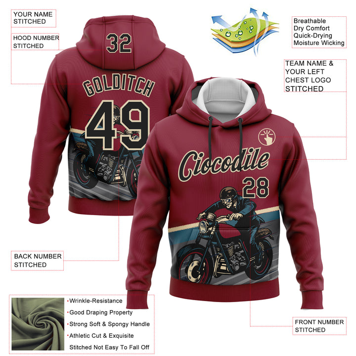 Custom Stitched Crimson Black-Cream 3D Pattern Design Motorcycle Motocross Racing Sports Pullover Sweatshirt Hoodie