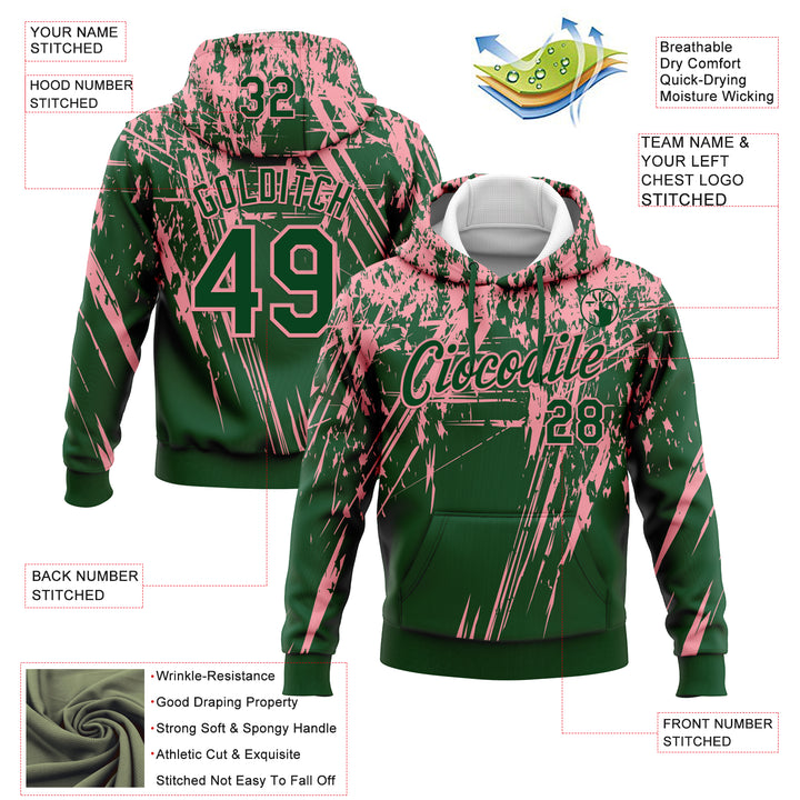 Custom Stitched Green Medium Pink 3D Pattern Design Splash Grunge Art Sports Pullover Sweatshirt Hoodie