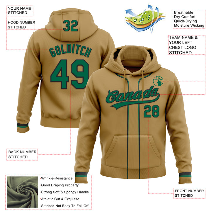 Custom Stitched Old Gold Kelly Green-Black Baseball Pullover Sweatshirt Hoodie