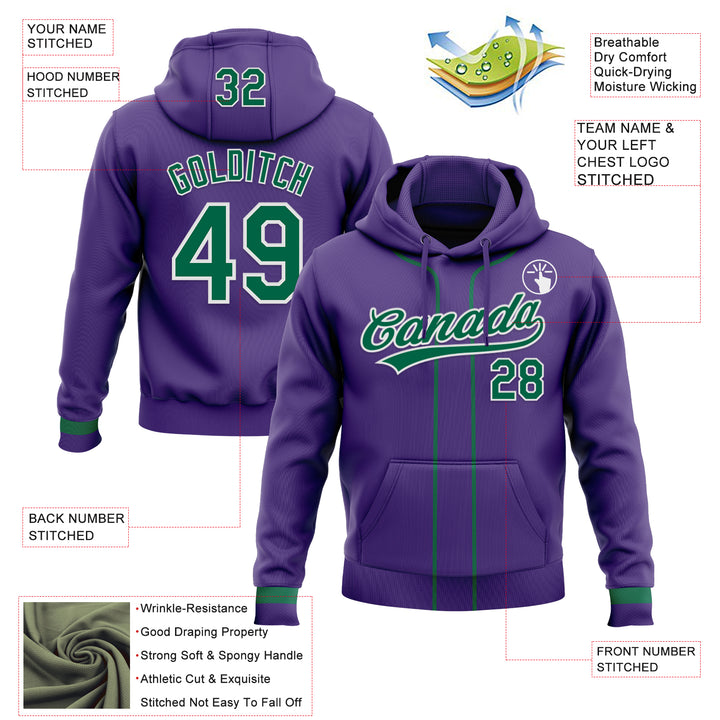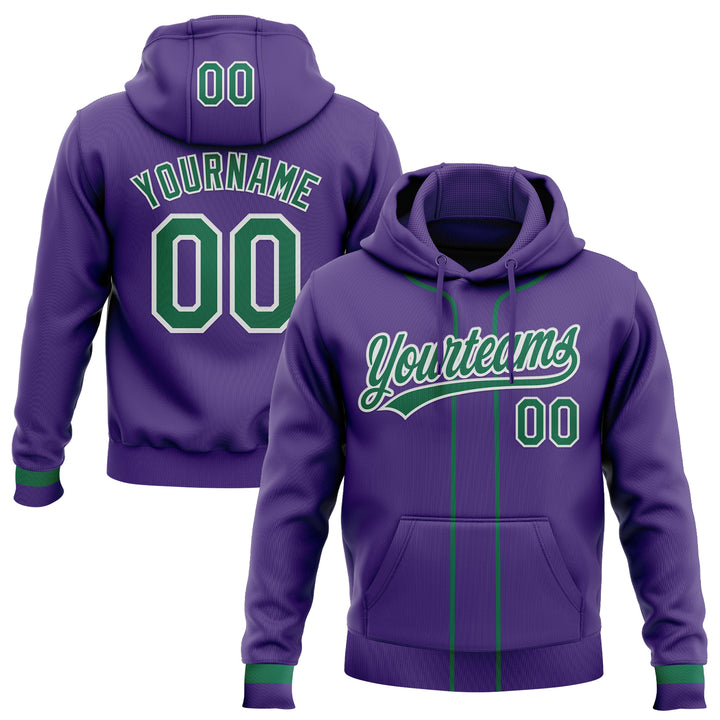 Custom Stitched Purple Kelly Green-White Baseball Pullover Sweatshirt Hoodie