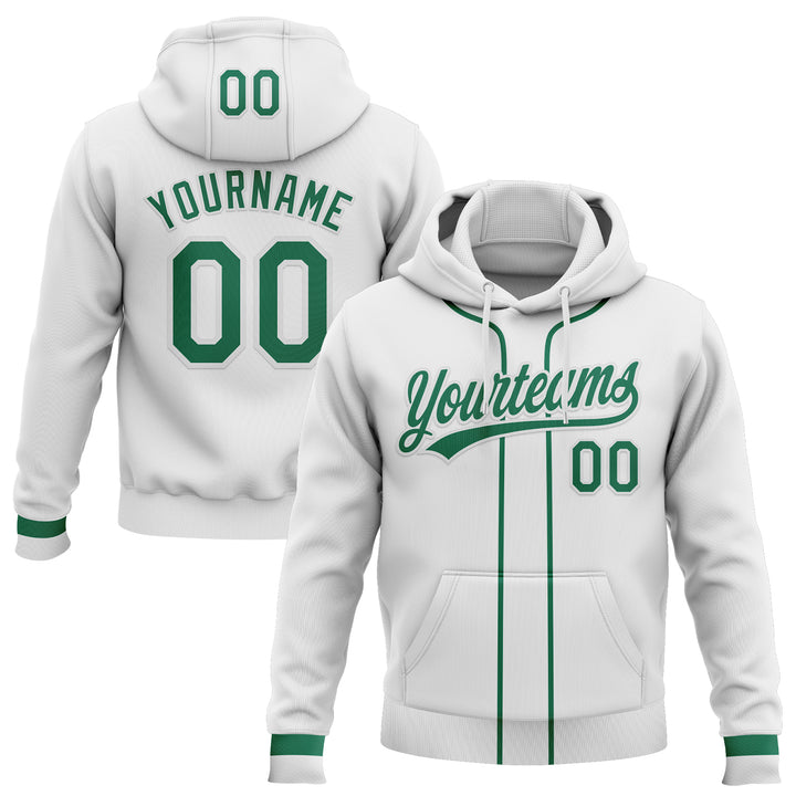 Custom Stitched White Kelly Green-White Baseball Pullover Sweatshirt Hoodie