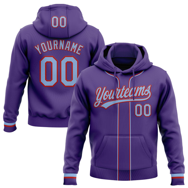 Custom Stitched Purple Light Blue-Red Baseball Pullover Sweatshirt Hoodie