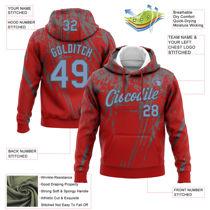 Custom Stitched Red Light Blue-Steel Gray 3D Pattern Design Splash Grunge Art Sports Pullover Sweatshirt Hoodie