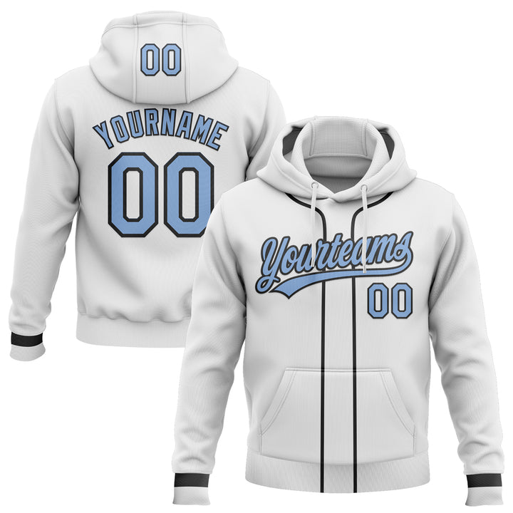 Custom Stitched White Light Blue-Black Baseball Pullover Sweatshirt Hoodie
