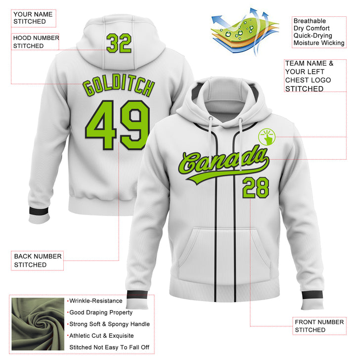 Custom Stitched White Neon Green-Black Baseball Pullover Sweatshirt Hoodie