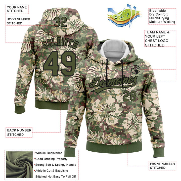 Custom Stitched Camo Olive-Black 3D Hawaii Palm Plant Sports Pullover Sweatshirt Salute To Service Hoodie